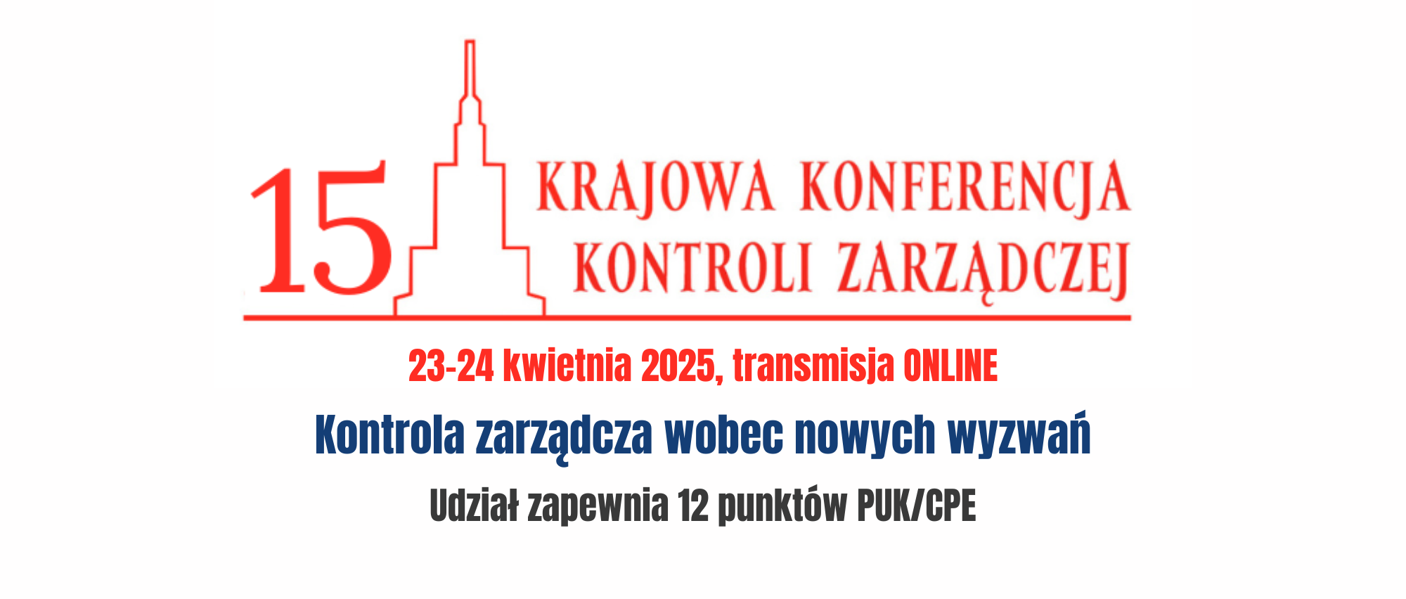 Po raz piętnasty zapraszamy Państwa na wyjątkowe wydarzenie. XV Krajowa Konferencja Kontroli Zarządczej odbędzie się 23-24 kwietnia 2025 roku w Warszawie. Uczestnictwo możliwe jest w dogodnej formie transmisji online.